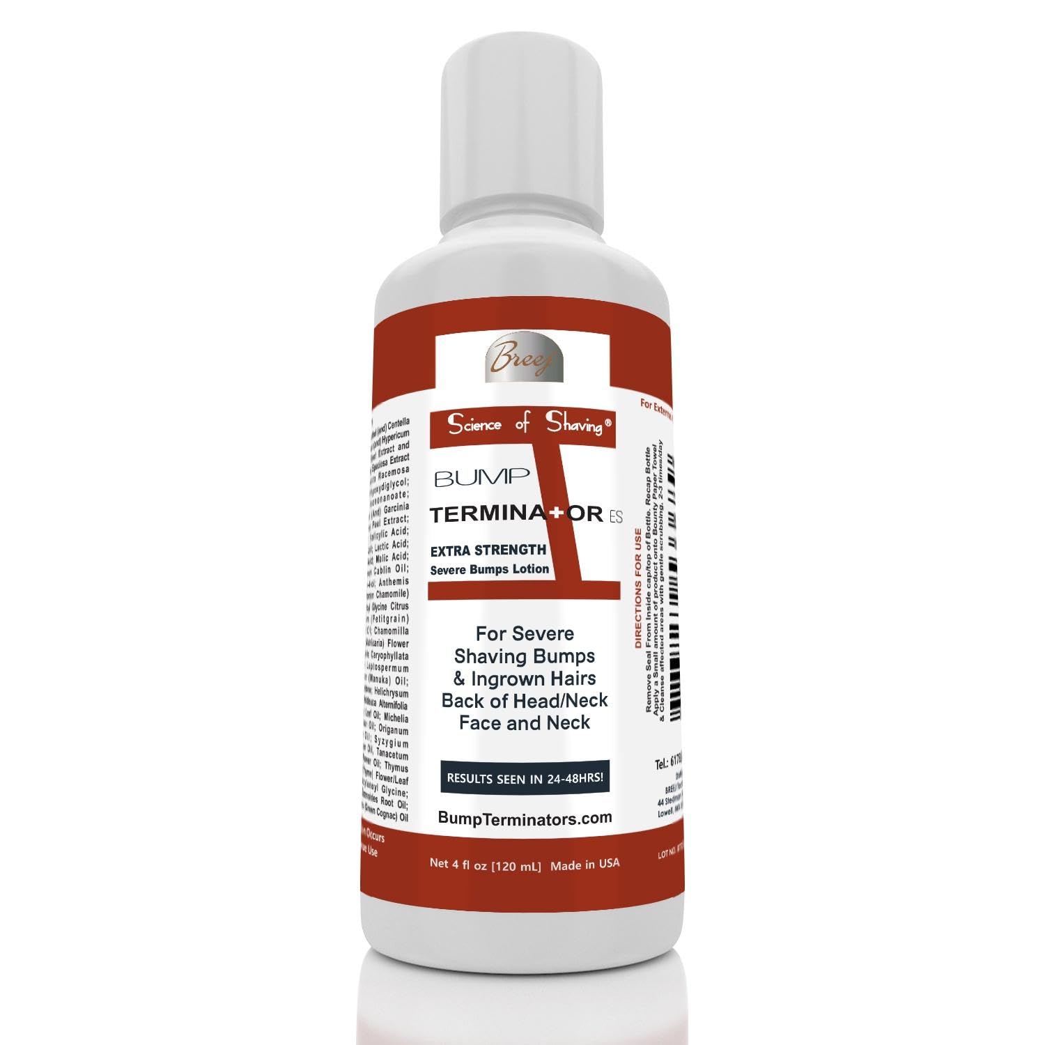 Formulated With BREEJ Advanced Anti Bump Phytoplex With Potent Ingredients Including Mangosteen Peel Extract, Alpha Bisabolol, Glycolic Acid, Salicylic Acid, Centella Asiatica Extract, Melaleuca Alternifolia [Tea Tree] Oil, Dimethylmethoxy Chromanyl Palmitate. This Lotion Is Formulated To Specifically Address Severe Shaving Bumps, Ingrown Hairs, Back-Of-The-Head Bumps And Dark Spots.