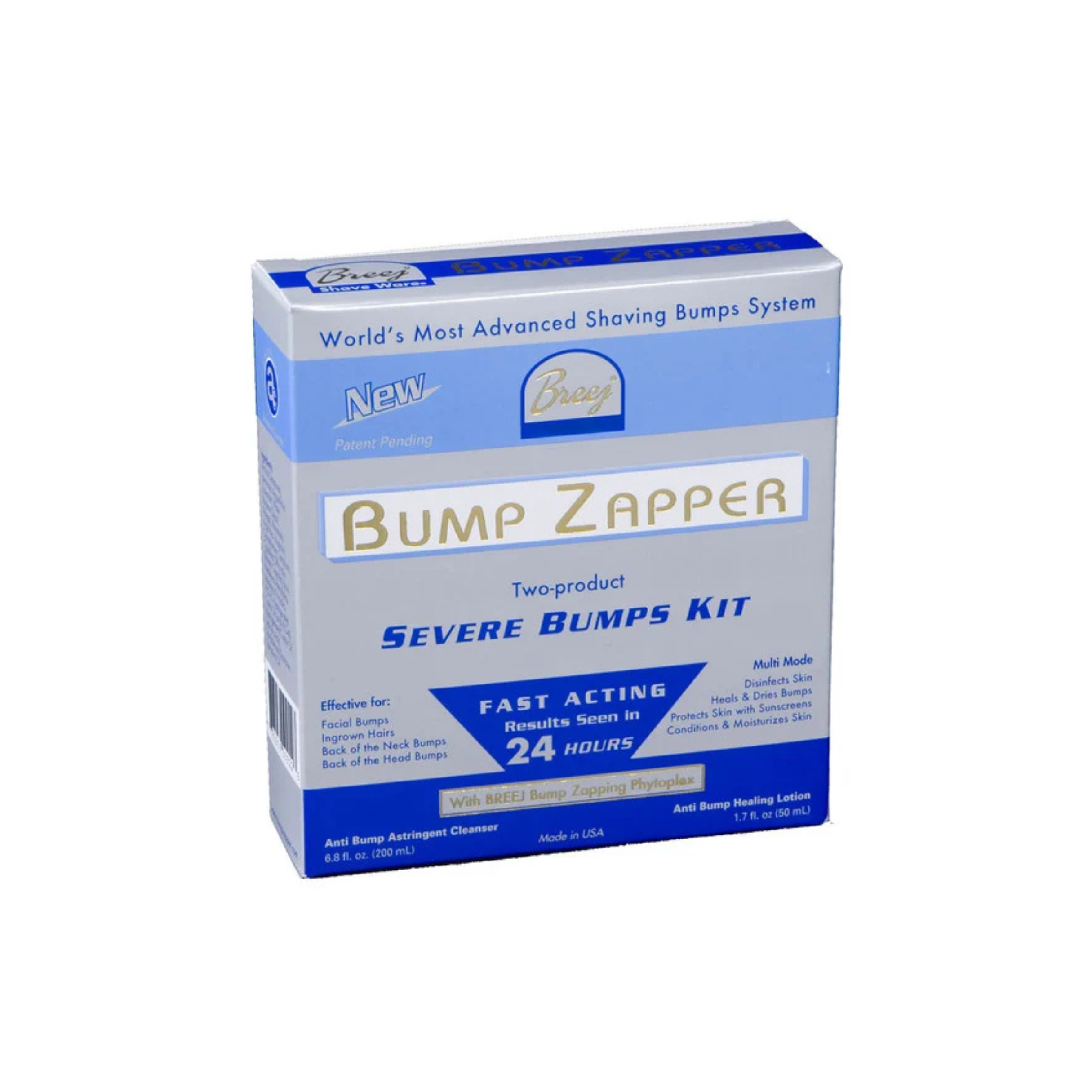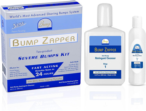 BUMP ZAPPER Severe Bumps Kit (Shrink Wrapped Anti Bump Astringent Cleanser and Shrink Wrapped Anti Bump Healing Lotion) This 2 – product severe bumps kit provides immediate noticeable improvement within 24 hours of use.